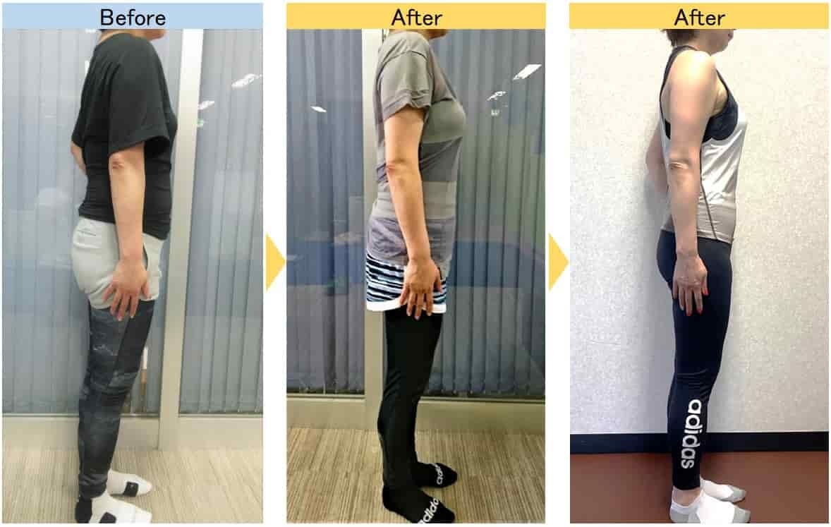 定期的に撮影していただく写真で、徐々に体が変わっているのがはっきり分かりました。お腹周りがへこんだのは自分でも分かりましたが、前に出ていた肩が改善され、姿勢が良くなったことは、写真を見て初めて気づきました。