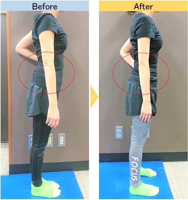 また、出産後にお腹が出てきていたことも気になっていました。反り腰も相まって余計にお腹が出て見えてしまっている状況も何とかしたい・・・